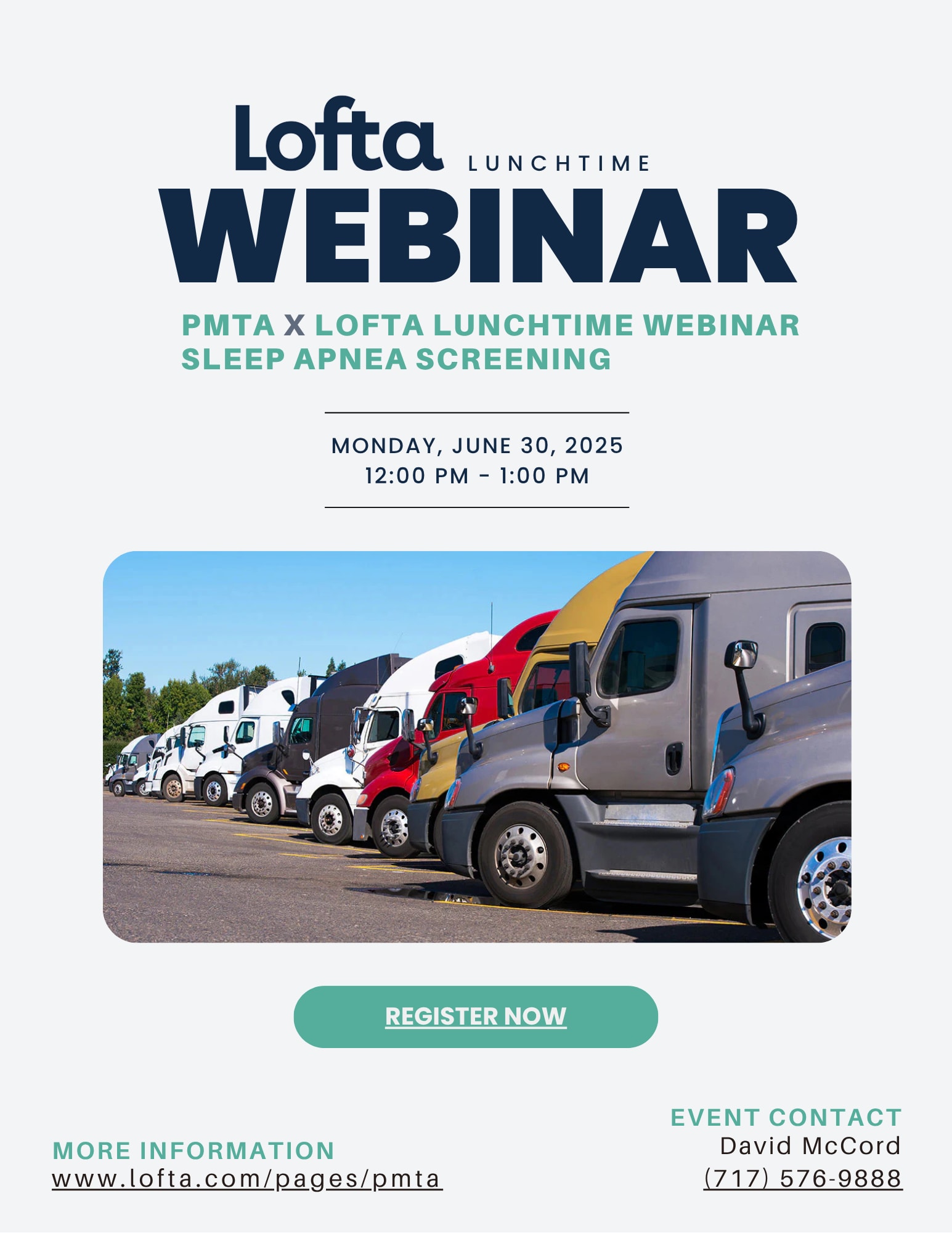 PMTA welcomes Lofta to present in our Lunchtime Webinar series for a presentation on Sleep Apnea Screening Solutions. Join us Monday, June 30th, 2025, at 12pm EST - 1pm EST. More information on Lofta's sleep apnea solutions here: https://lofta.com/pages/pmta