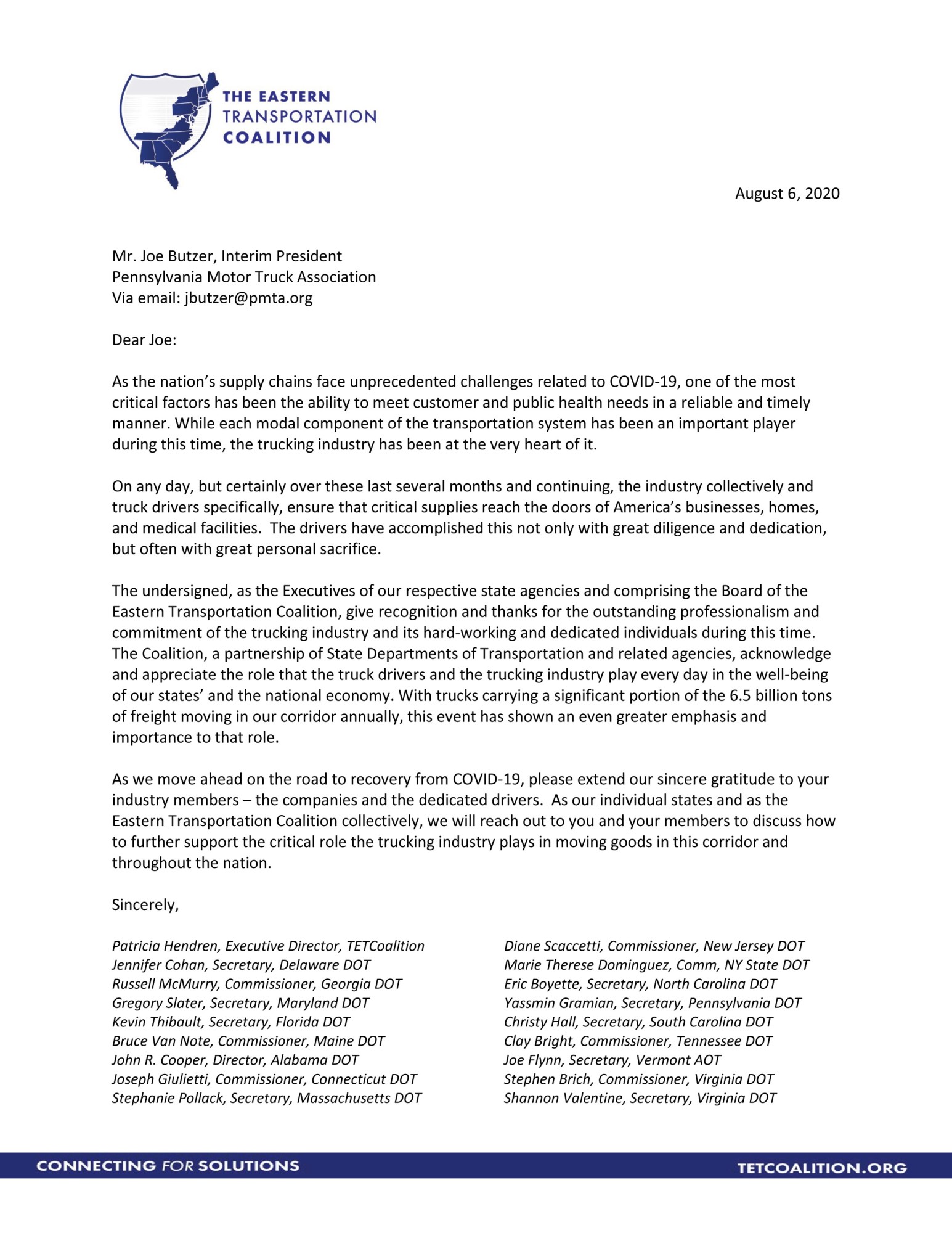 Appreciation Letter from The Eastern Transportation Coalition Back to News Appreciation Letter from The Eastern Transportation Coalition By Megan Magensky 8/6/2020 Images × Share × Email Facebook LinkedIn X Pinterest Powered By GrowthZone